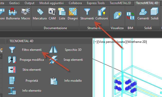 Usare il comando Filtro elementi in TecnoMETAL 4D: